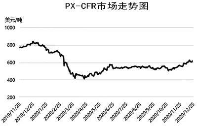 2020年,PX市場大幅回落后保持低位震蕩。在原油暴跌以及國際疫情肆虐的陰霾之下,國內PX市場持續走低,4月份價格一度跌至近十幾年來新低。隨著終端需求緩慢復蘇,PX市場止跌企穩,不過在高庫存背景下,PX反彈乏力,即使在“金九銀十”市場也沒有出現亮眼表現,下半年則基本處于窄幅波動的狀態。